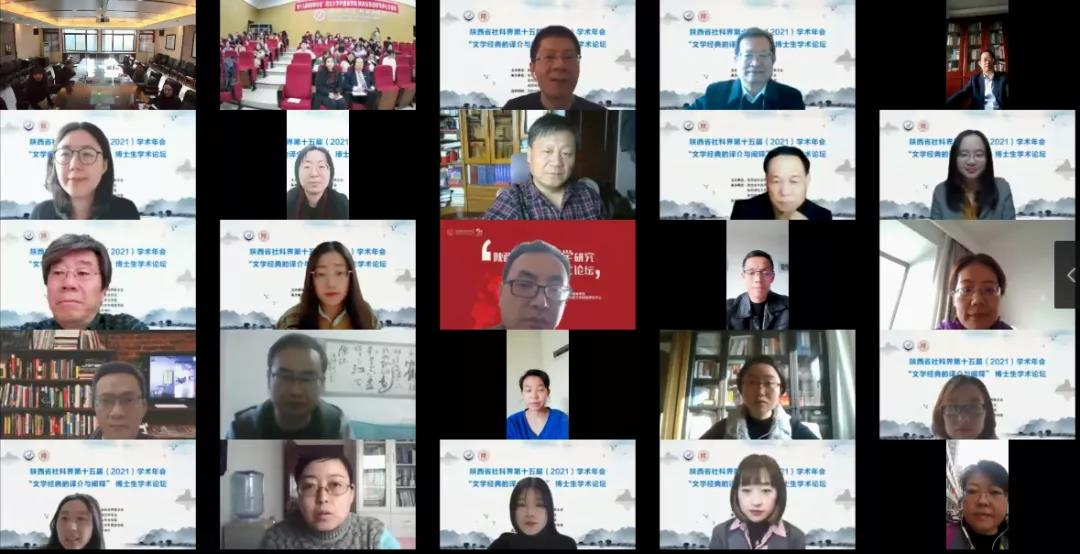 10月30日,由陕西省社会科学界联合会主办,陕西省外国文学学会、陕西师范大学文学院和陕西师范大学外国语学院联合承办的陕西省社科界第十五届(2021)学术年会“文学经典的译介与阐释”博士生学术论坛成功召开。本次论坛通过腾讯会议在线直播的形式进行,陕西省内15位专家学者受邀出席。我院在第二课堂设线下分会场,并组织2020级学硕、2021级全体学生观看会议。